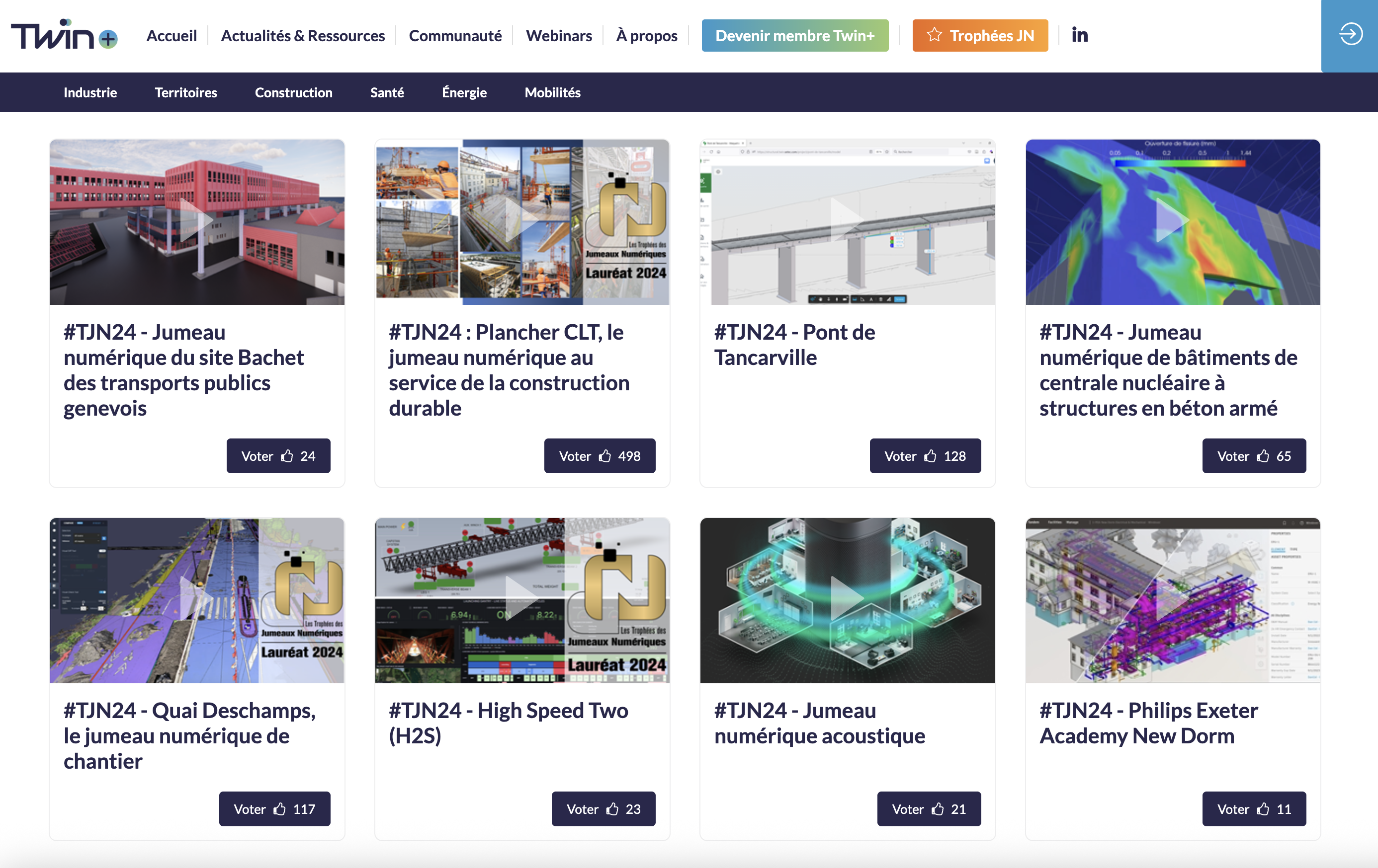 Les Trophées des Jumeaux Numériques sont organisés depuis 2023 par Twin+ et ses partenaires. À l'origine, la compétition se réservait aux secteurs de la construction et des territoires. En 2026, son format change. La compétition est ouverte à tous les secteurs : industrie, santé, logistique, énergie, environnement, construction, territoires... De plus, les candidatures peuvent être déposées tout au long de l'année.